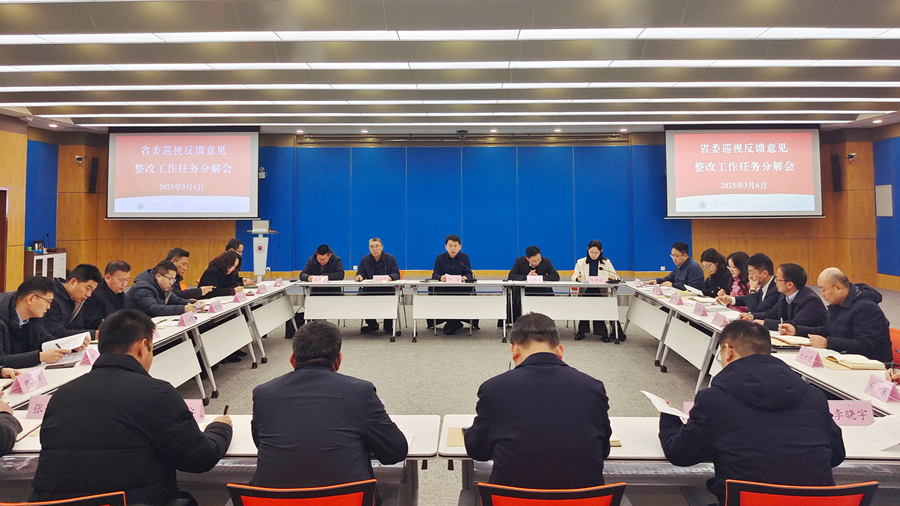 閭浩簡(jiǎn)要介紹了省委巡視反饋意見(jiàn)的總體情況及分解原則。他強(qiáng)調(diào),學(xué)校各單位要堅(jiān)決貫徹落實(shí)省委和校黨委部署要求,堅(jiān)持把抓好巡視整改工作作為推進(jìn)全面從嚴(yán)治黨的有力抓手和推動(dòng)學(xué)校高質(zhì)量發(fā)展的重要契機(jī),切實(shí)擔(dān)起整改主體責(zé)任,堅(jiān)定不移做好巡視“后半篇文章”。閭浩就扎實(shí)推進(jìn)我校巡視整改工作提出三點(diǎn)要求:一是提高政治站位,從政治和全局的高度認(rèn)識(shí)巡視整改工作,準(zhǔn)確把握時(shí)間節(jié)點(diǎn),厘定整改責(zé)任,對(duì)照認(rèn)領(lǐng)問(wèn)題清單,研究制定務(wù)實(shí)有效的整改舉措;二是強(qiáng)化擔(dān)當(dāng)作為,各相關(guān)單位主要負(fù)責(zé)人要扛起“第一責(zé)任人”職責(zé),堅(jiān)持問(wèn)題導(dǎo)向,壓實(shí)主體責(zé)任,注重統(tǒng)籌協(xié)調(diào),做到真認(rèn)賬、真反思、真整改、真負(fù)責(zé);三是深化標(biāo)本兼治,堅(jiān)持“當(dāng)下改”與“長(zhǎng)久立”相結(jié)合,確保問(wèn)題整改“事事有舉措、件件有著落”,尤其要聚焦深化改革,聚力完善制度機(jī)制,切實(shí)做到“整改一個(gè)問(wèn)題、完善一套制度、堵塞一批漏洞”,不斷提升辦學(xué)治校能力和水平,促進(jìn)學(xué)校事業(yè)高質(zhì)量發(fā)展。