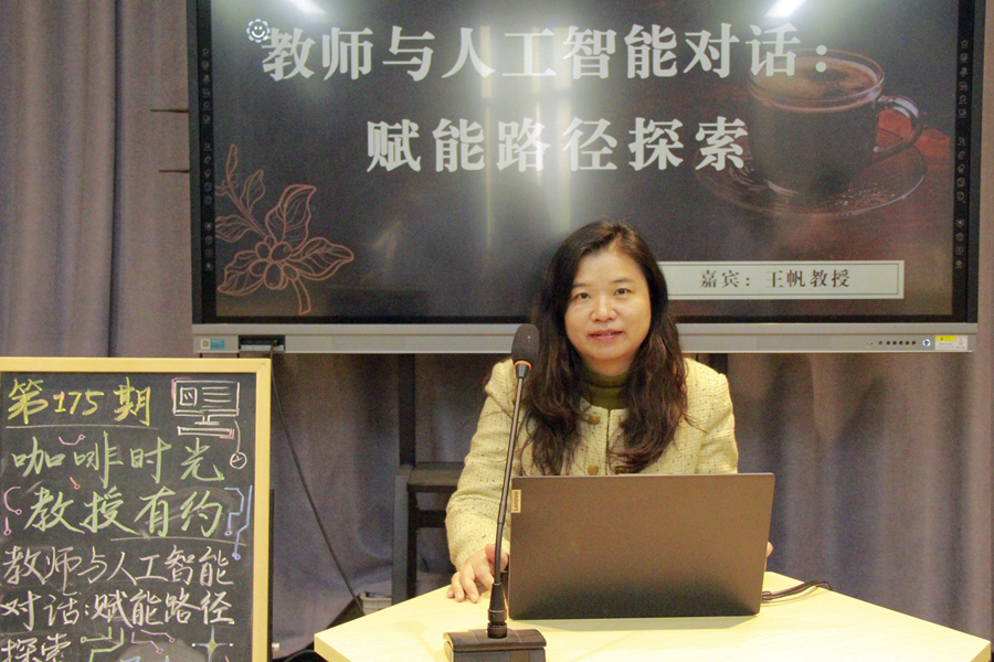 3月28日,第175期“咖啡時光·教授有約”活動在泉山校區園丁餐廳六點匯實踐基地舉行。智慧教育學院王帆教授以“教師與人工智能對話:賦能路徑探索”為題,與同學們展開深入交流。
