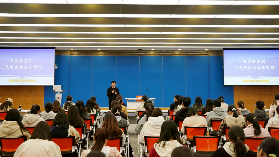 活動中,董玉瑋深情回憶了本科和碩士研究生階段的求學時光,講述了大學生活的趣事,并從“做理論的實踐者”“做創新的思想者”“做終身的學習者”三個方面,為學弟學妹們揭示了自己從實驗室到三尺講臺的“成長密碼”,分享了自己對“要不要就業”“要不要考博”“如何上好一節課”“為什么要終身學習”“如何解決復雜問題”等問題的認識與思考。董玉瑋向學弟學妹提出三點建議,一是要自覺加強學習,勇于實踐,把知識轉化為能力,在知行合一中練就過硬本領;二是要增強獨立思考、自主探究的意識,激發自身創新潛能,努力在學習和工作中做到人無我有、人有我優;三是要珍惜當下,牢牢把握歷史機遇,深刻認識自身所肩負的時代使命,敢擔當、能吃苦、肯奮斗。