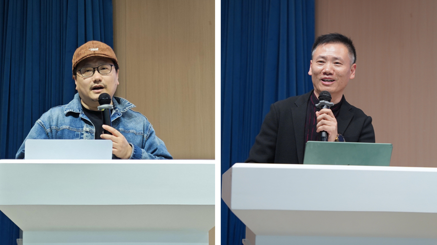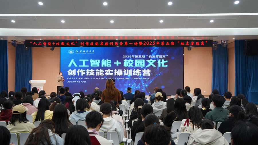 4月12日下午,2025年第五期“校友零距離”暨“人工智能+校園文化”創作技能實操訓練營第一講在泉山校區路演大廳舉行。我校1999級市場營銷專業校友、南京藝術學院教師彭奇奇,1999級美術學專業校友、南京新數質寧盟科技有限公司創始人宋高峰受邀重回母校,圍繞AI創作與在場師生深入交流。
