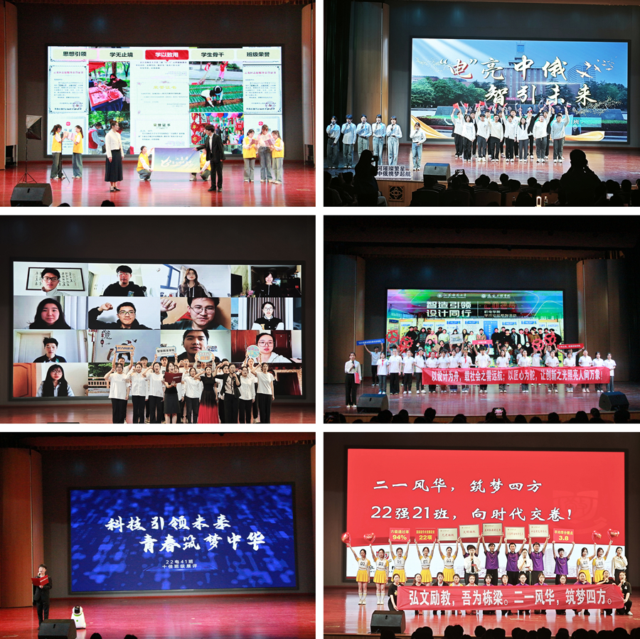 展評現場,從全校565個班級脫穎而出入圍終評的23個候選班級圍繞“班風正、學風好、學子優、班委強、榮譽多”等五個方面,以主題匯報、情景劇、朗誦和歌舞表演等多種表現形式展示了班級建設的突出成績和特色亮點,充分展現了我校學子的蓬勃朝氣和積極向上的精神風貌,也彰顯了各學院在班級建設和學生教育培養方面的創新舉措與顯著成效。