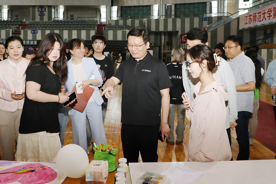 隨著五彩繽紛的禮花彩帶在空中綻放,江蘇師范大學2025年第二十四屆“5·25”心理健康教育文化月正式啟動。啟動儀式后,領導師生們一起沐光同行,共同參與各學院和校心理健康教育中心舉辦的特色心理活動。物理與電子工程學院開展的“心光手作、燈影傳情”手工制作,校心理中心開展的“舒展身心、脆皮養生”艾草錘diy,敬文書院開展的“快樂加油站——心理游園會”,商學院開展“勇敢愛自己”5·25師生快樂跑,生命科學學院開展的“向太陽借一束光”藍曬手作等現場活動,吸引廣大師生駐足參與,整個體育館充滿了歡快的笑聲。