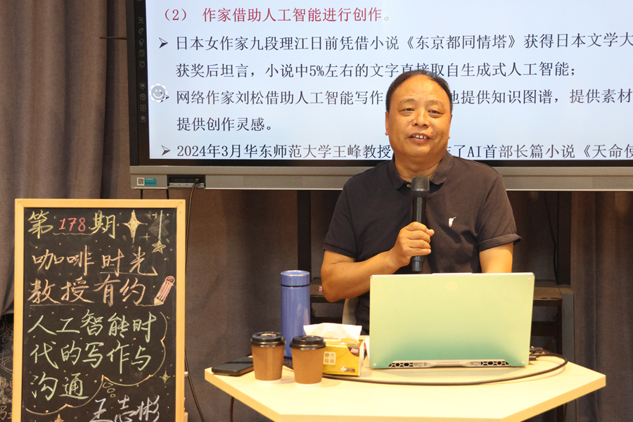 5月29日下午,第178期“咖啡時光·教授有約”活動在泉山校區(qū)三食堂六點匯舉行。文學(xué)院王志彬教授就“人工智能時代的寫作與溝通”這一主題與在場同學(xué)進行交流。