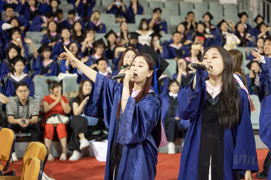 畢業(yè)典禮開始前,音樂學院研究生以精彩的快閃節(jié)目,表達了對母校的無盡感激與對師友的不舍之情。畢業(yè)典禮在熱情洋溢的音樂串燒和師生合唱中圓滿落幕。