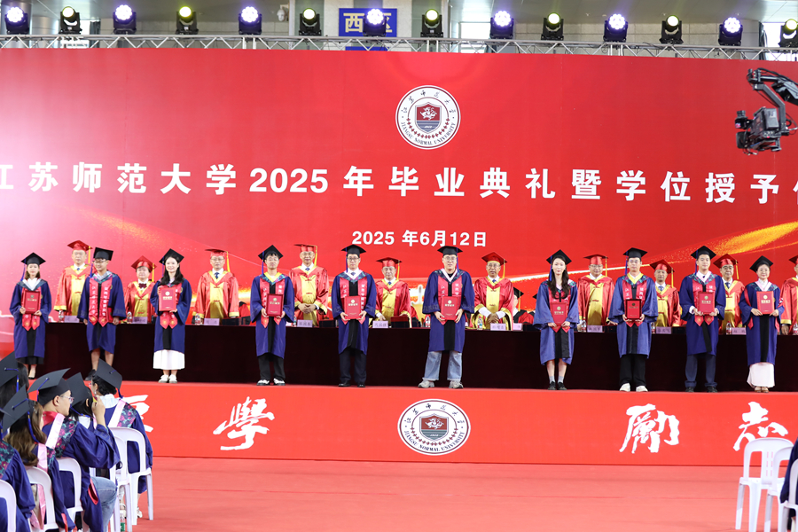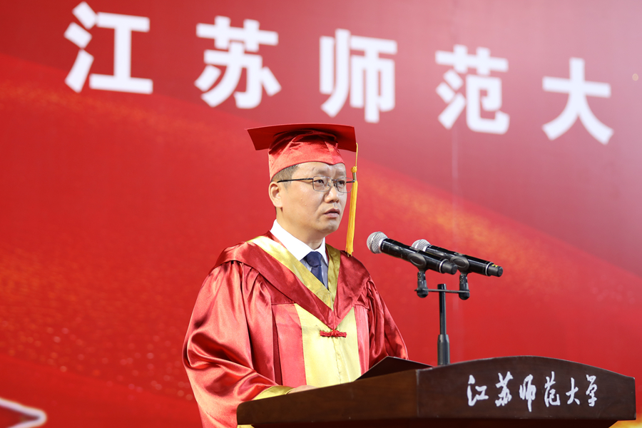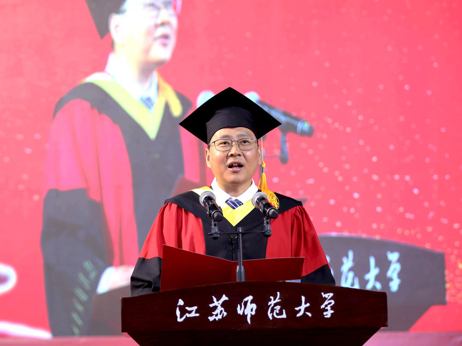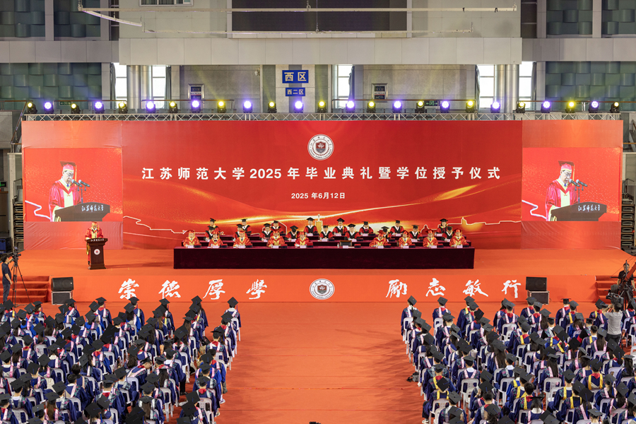 6月12日上午,江蘇師范大學2025年研究生畢業(yè)典禮暨學位授予儀式在泉山校區(qū)體育館隆重舉行。全體校領導出席典禮,校學位評定委員會委員、研究生培養(yǎng)單位相關領導、研究生導師代表、2025年全體畢業(yè)研究生、研究生親屬代表、非畢業(yè)年級研究生代表參加典禮。校黨委副書記蔡國春主持典禮。