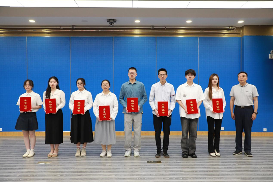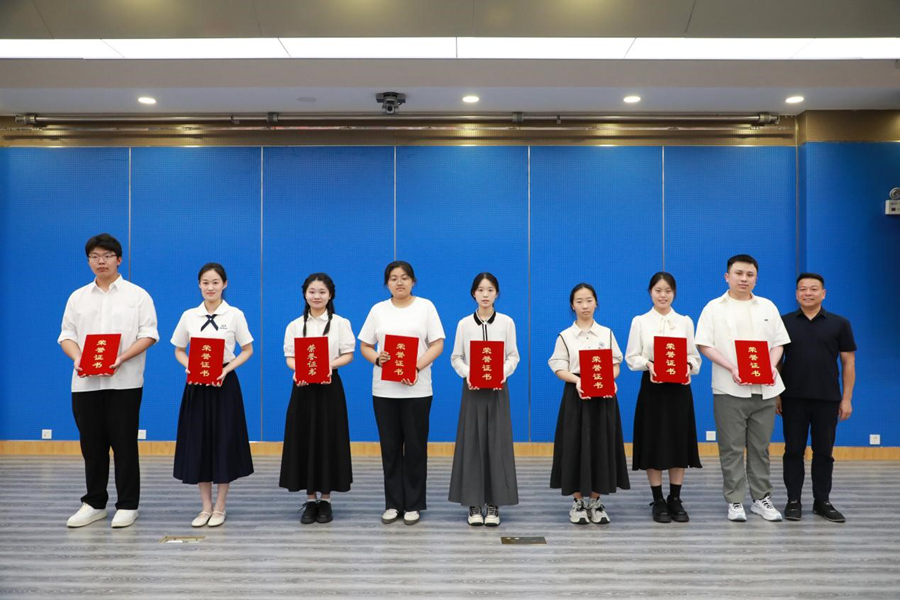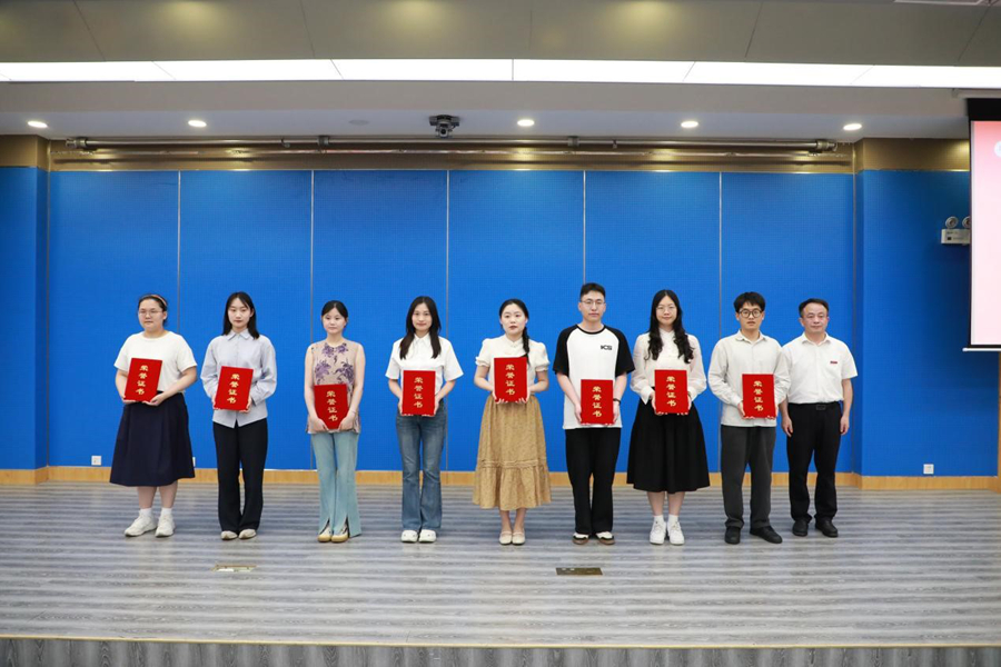 芮國強等與會領導為獲獎學生頒獎。文學院21文16班葉琳代表獲獎同學發言。