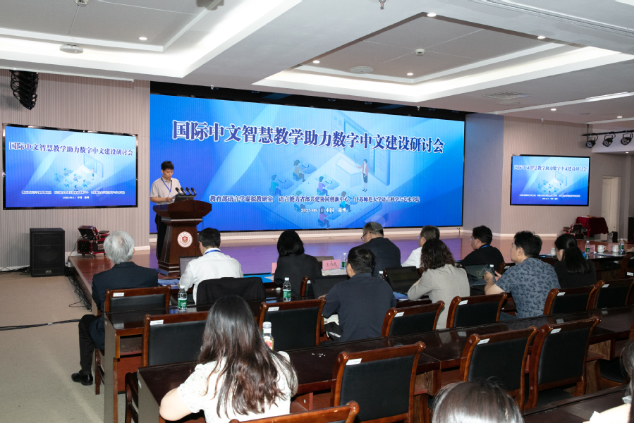 6月11日,由江蘇師范大學教育部語言學虛擬教研室、語言能力省部共建協同創新中心、語言科學與藝術學院主辦的“國際中文智慧教學助力數字中文建設研討會”在徐州成功舉辦。此次研討會響應教育部、國家語委、中央網信辦聯合印發的《關于加強數字中文建設 推進語言文字信息化發展的意見》,聚焦國際中文智慧教學如何賦能數字中文建設這一核心主題,來自教育部語信司、江蘇省教育廳和南京大學、北京師范大學、華中科技大學、北京語言大學等20余所高校的專家學者和代表,共同探討人工智能與國際中文教育深度融合的創新路徑。