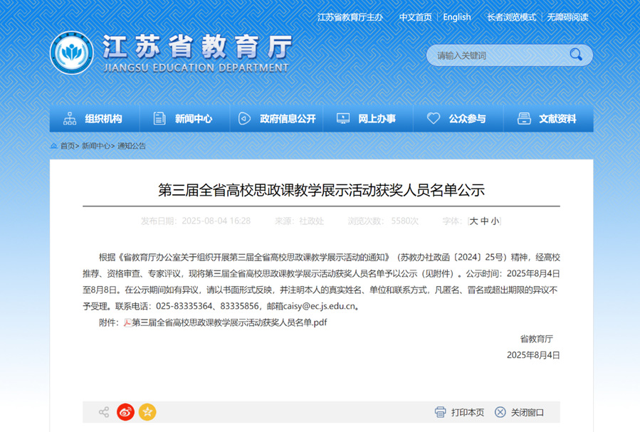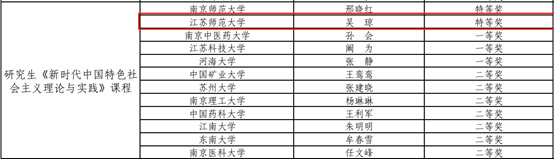 近日,由江蘇省教育廳主辦的第三屆全省高校思政課教學展示活動圓滿落幕,我校馬克思主義學院教師吳瓊榮獲“研究生《新時代中國特色社會主義理論與實踐》課程組”特等獎。