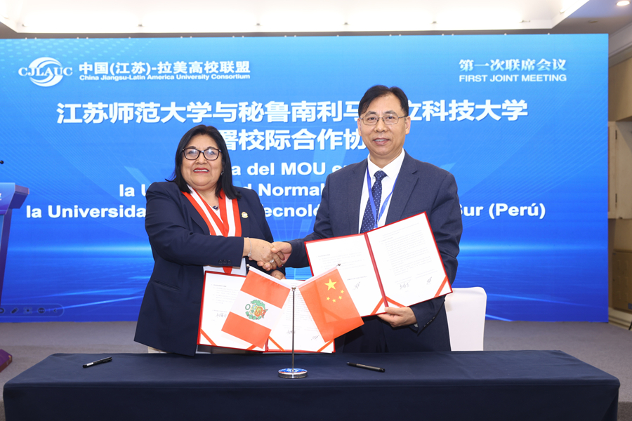 作為本屆論壇發布的兩項重要成果之一,由我校作為會長單位聯合22所國內知名高校和33所拉美高校共同發起的“中國(江蘇)—拉美高校聯盟”正式成立。校長杜增吉、聯盟秘書長單位南京特殊師范學院黨委書記黃軍偉、秘魯南利馬國立科技大學校長格拉迪絲·克魯斯、古巴蛋白植物與天然產品研究中心主任曼努埃爾·索布里諾共同為聯盟揭牌。