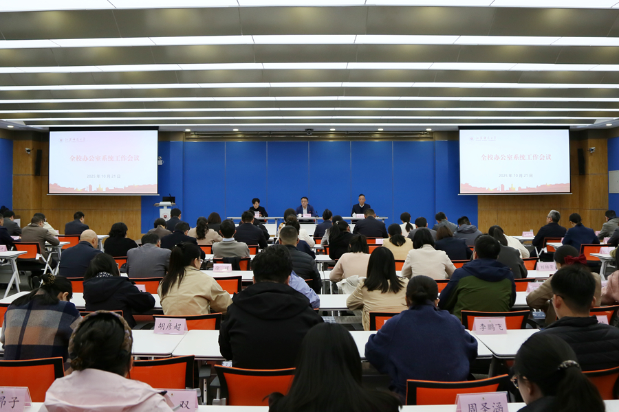 10月21日下午,全校辦公室系統工作會議在分析測試中心300會議室舉行。校黨委書記芮國強出席會議并講話。各院級黨組織書記,各機關及直屬業務單位負責人以及負責文稿工作的人員,各學院黨政辦主任參會。