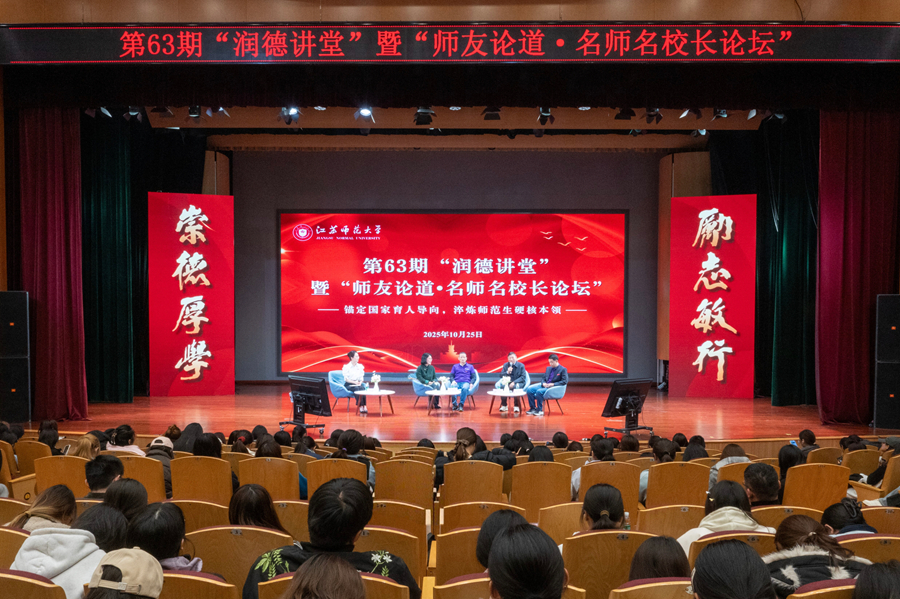 10月25日下午,黨委學(xué)生工作部、國(guó)內(nèi)合作處(校友聯(lián)誼會(huì)辦公室)在馬可音樂廳共同舉辦第63期“潤(rùn)德講堂”暨“師友論道?名師名校長(zhǎng)論壇”活動(dòng)。校友張飛、高青、王宗信和陳衛(wèi)東圍繞“錨定國(guó)家育人導(dǎo)向,淬煉師范生硬核本領(lǐng)”主題,分享實(shí)踐經(jīng)驗(yàn)、共話育人之道。