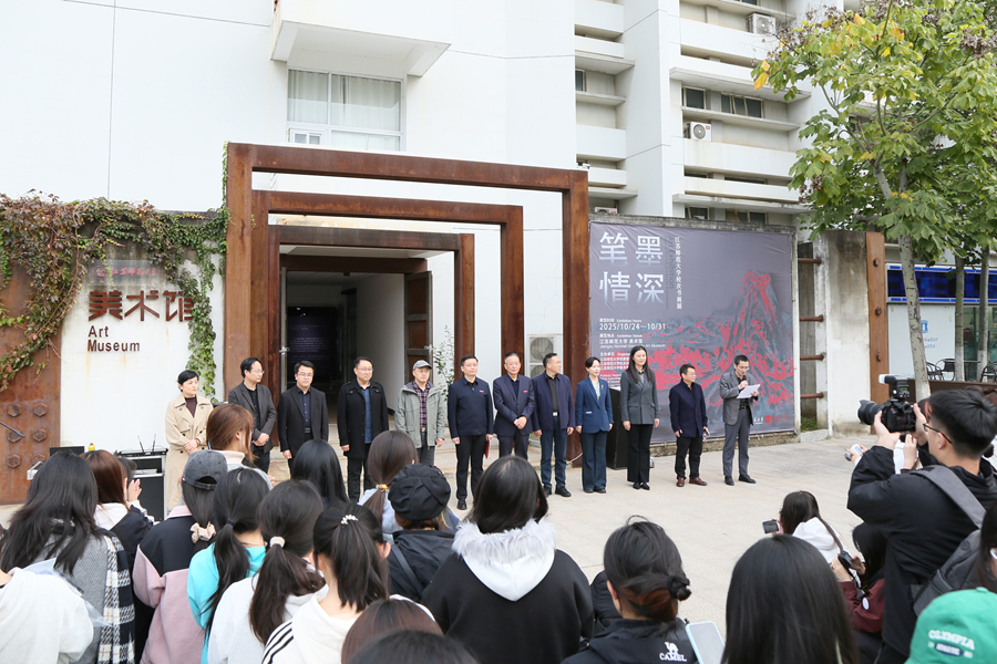 商亮在開幕式上致辭,他向為本次書畫展付出辛勤勞動的工作人員以及所有傾情創作的師生、校友們表示感謝,闡釋了舉辦此次書畫展的重要意義。他表示,舉辦此次書畫展,用最雅致、最真誠的筆墨,為學校慶生,是一次家人之間才情的展示與心靈的對話,以藝術為紐帶串聯起我們共同的記憶與對未來的期許。參展作品的一筆一劃、一草一木、一景一物,無不是師生校友內心世界的真誠映照,共同展現了江蘇師范大學大家庭強大的凝聚力、蓬勃的創造力。最后,商亮寄語全體師大人:“讓我們將這份對‘家’的摯愛,化為前行的動力。以知識充實頭腦,以藝術滋養心靈,共同把我們這個家建設得更加美好、更有品位、更富魅力。”