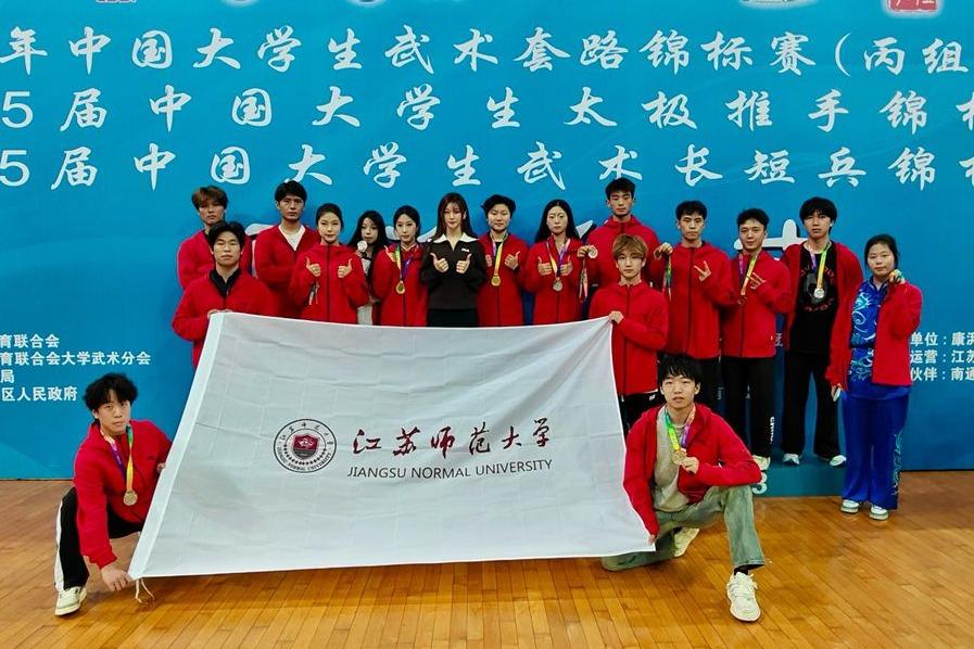我校武術(shù)代表隊(duì)在比賽中發(fā)揮出色,憑借精湛的技藝與頑強(qiáng)拼搏的精神,共斬獲金牌2枚、銀牌6枚、銅牌5枚,并取得第四名3項(xiàng)、第五名2項(xiàng)、第六名6項(xiàng)、第七名2項(xiàng)、第八名3項(xiàng)的優(yōu)異成績,在全國舞臺上充分展現(xiàn)了江蘇師范大學(xué)學(xué)子的卓越風(fēng)采。