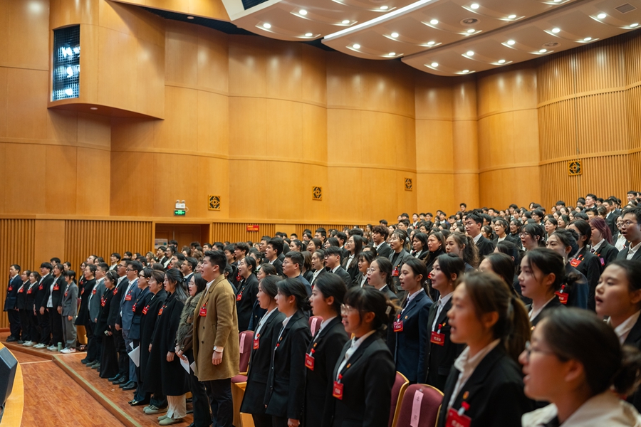 大會在莊嚴的國歌聲中拉開序幕。商亮代表學(xué)校黨委向大會的召開表示祝賀,向與會嘉賓和全體代表致以誠摯問候。他指出,大會的召開適逢全校深入學(xué)習(xí)貫徹黨的二十屆四中全會精神、謀劃制定學(xué)校“十五五”規(guī)劃之際,具有重要意義。他對學(xué)生會、研究生會過去一年取得的成績予以充分肯定,并提出三點希望:一是青年學(xué)生要筑牢思想根基,在學(xué)思踐悟中堅定青春信仰。二是學(xué)生骨干要磨礪意志品格,在率先示范中彰顯責任擔當。三是各級學(xué)生會、研究生會要提升組織效能,在改革創(chuàng)新中服務(wù)青年成長。他希望各級學(xué)生會組織以大會為新起點,引導(dǎo)和激勵更多青年為助力學(xué)校高質(zhì)量發(fā)展作出積極貢獻,以奮斗之姿、實干之態(tài)在強國建設(shè)、民族復(fù)興偉業(yè)中書寫青春華章。