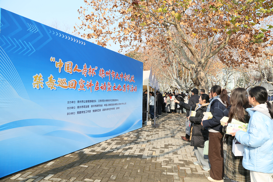 12月24日下午,由徐州市公安局禁毒支隊、江蘇師范大學新時代文明實踐中心主辦的“中國人壽杯”徐州市大中專院校禁毒巡回宣講啟動儀式在江蘇師范大學舉行。校黨委常委、宣傳部部長孟召學,徐州市公安局禁毒支隊支隊長葛曉華出席活動,全市大中專院校相關(guān)負責人及禁毒志愿者學生代表約400人參加活動。