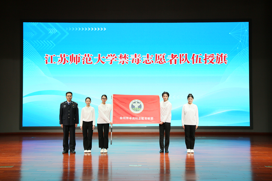 活動中,語言科學與藝術(shù)學院學生精心準備了精彩節(jié)目,《識毒揭真貌》《防毒明危害》《拒毒守己心》主題宣講、情景劇《禁毒薪火傳》以及朗誦《無毒中國說》贏得現(xiàn)場師生陣陣掌聲。活動還舉行了江蘇師范大學禁毒志愿者隊伍授旗儀式。