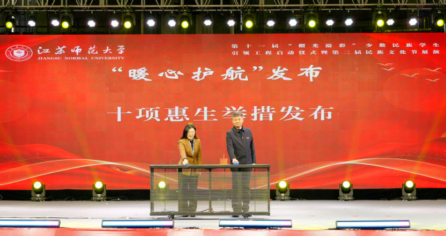 活動現場進行“暖心護航”發布,解讀《江蘇師范大學“榴光溢彩”工程實施辦法(2025年修訂)》核心內容,揭曉“十項惠生舉措”;開展“同心同向”聘任,為第十一屆校內外“曙光導師”“韶光益友”頒發聘書;舉行“榴籽相擁”少數民族師生結對儀式;開展“逐光奮進”獲獎學生頒獎環節。