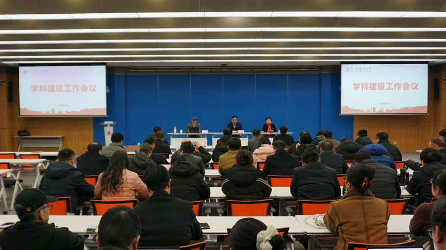 1月11日下午,學校召開學科建設專題會議,研判發展形勢,凝聚行動共識,系統謀劃并全力推動學科建設在新時期實現跨越式發展。校黨委副書記、校長杜增吉出席會議并講話,校黨委常委、副校長婁崢嶸主持會議。全校一級學科帶頭人、依托學院院長、學科秘書及研究生院(學科建設辦公室)相關人員等80余人參會。