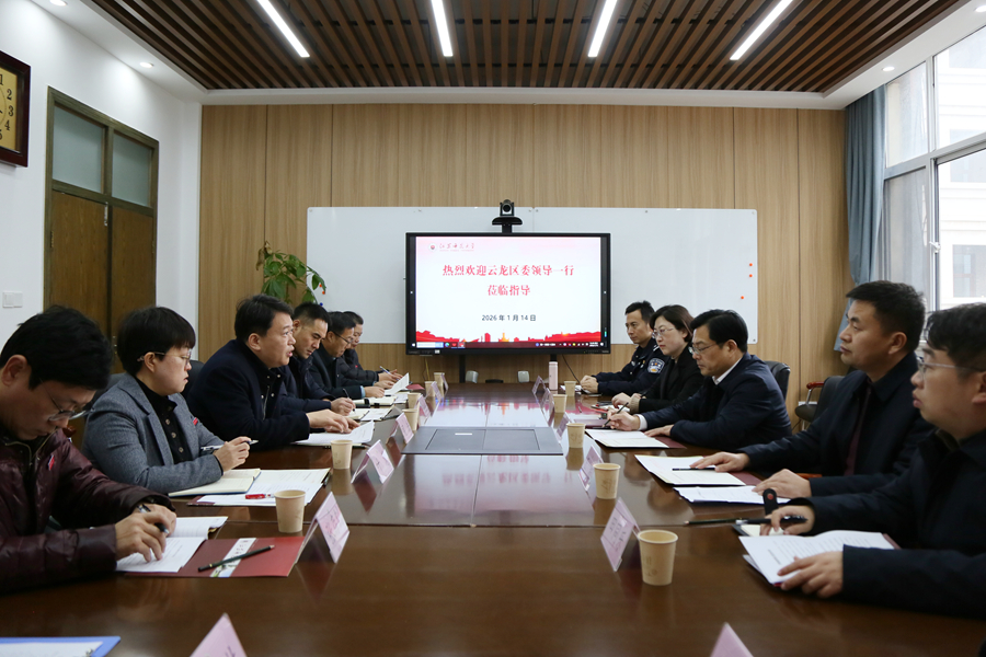 1月14日,云龍區(qū)委副書記李強(qiáng)率區(qū)委辦、區(qū)教育局、區(qū)科技局、彭城街道及彭城派出所等單位相關(guān)負(fù)責(zé)同志來到云龍校區(qū),就高校安全穩(wěn)定工作與校地融合發(fā)展進(jìn)行專題調(diào)研并座談交流。校黨委常委、紀(jì)委書記、派駐監(jiān)察專員閭浩主持會(huì)議并講話,學(xué)校相關(guān)職能部門負(fù)責(zé)人參加座談。