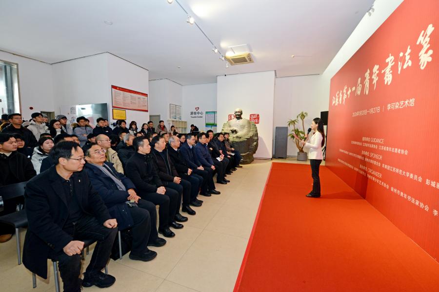 1月20日,由我校與江蘇省青年書法家協(xié)會(huì)、徐州市文學(xué)藝術(shù)界聯(lián)合會(huì)等單位聯(lián)合主辦的江蘇省第十一屆青年書法篆刻作品展在徐州李可染藝術(shù)館隆重開幕。團(tuán)省委副書記、省青聯(lián)主席張永意出席開幕式并講話,徐州市委宣傳部副部長(zhǎng)竇銅順致辭,我校黨委常委、副校長(zhǎng)商亮,省政府參事、省書協(xié)副主席、省青書協(xié)名譽(yù)主席劉燦銘,省書協(xié)副主席王偉林、金丹,省青年書協(xié)主席、我校美術(shù)學(xué)院教師張磊等嘉賓以及徐州市有關(guān)單位負(fù)責(zé)人、全省青年書法工作者及藝術(shù)界代表近100人出席開幕式。我校團(tuán)委、美術(shù)學(xué)院負(fù)責(zé)同志參加了開幕式。
