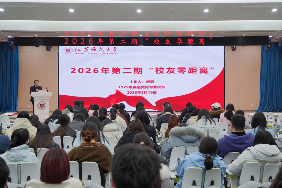 3月19日下午,由國內合作處(校友會)、外國語學院主辦的2026年第二期“校友零距離”在泉山校區路演大廳舉辦。我校1975級英語教育專業校友、聯合國語言部中文組前組長何勇教授受邀重返母校,以“從學習者到教育者:我的四十年跨文化旅程”為題,與在場的150余名師生展開深入交流。