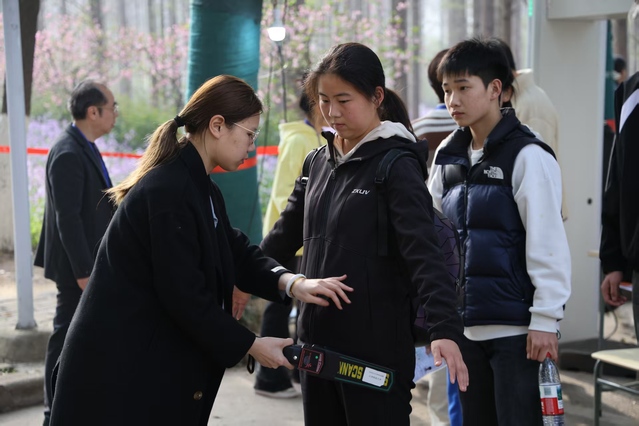 考點嚴格落實考試管理要求,啟用手機保管柜、智能安檢門等設備,從嚴做好入場檢查與物品管控。科學設置候考緩沖區域,優化入場流程,有效減少人員聚集,為考生營造了安靜、有序、安心的應試環境。
