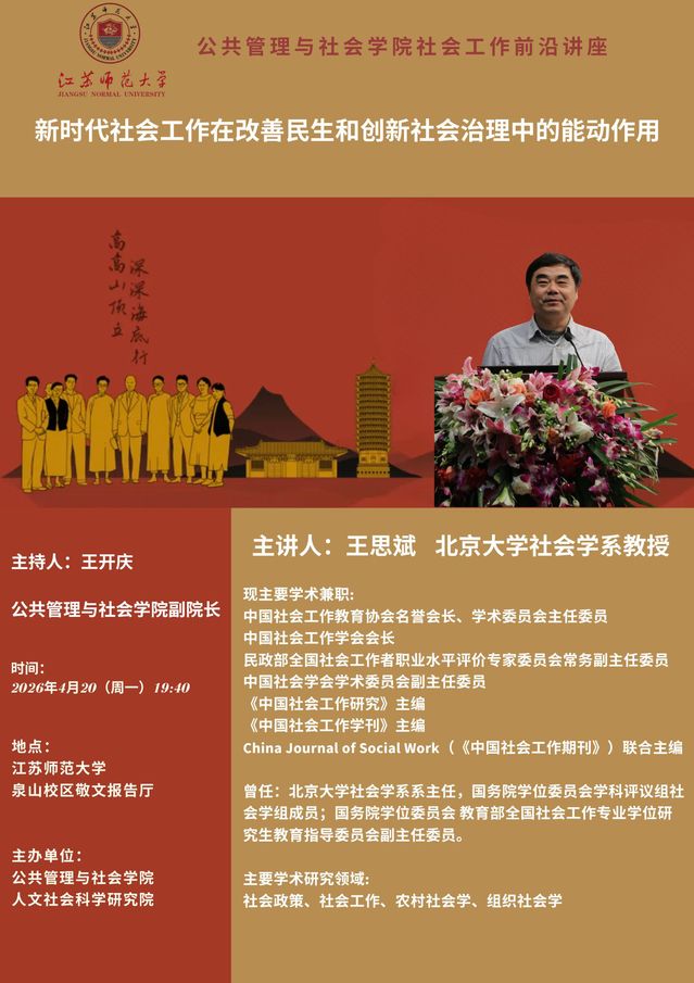 4月20日 王思斌教授講座(公共管理與社會學院)