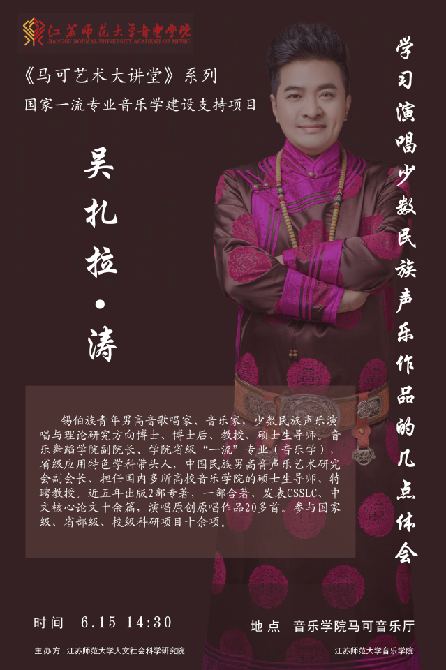 6月15日 吳扎拉?濤教授學(xué)術(shù)講座(音樂(lè)學(xué)院)