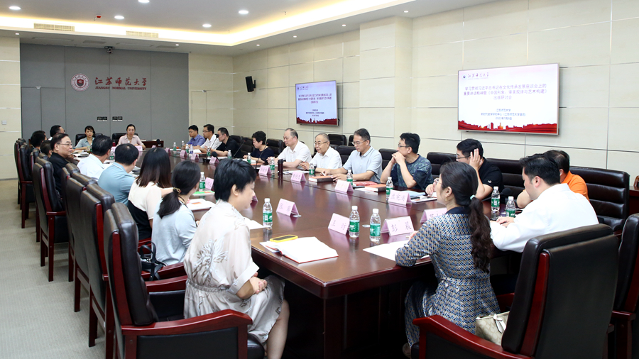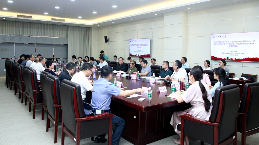 7月9日上午,學習貫徹習近平總書記在文化傳承發展座談會上重要講話精神暨《中國形象:審美規律與藝術構建》出版研討會在我校分析測試中心會議室舉行。本次研討會由中國作家協會新時代文學研究中心、江蘇師范大學共同主辦。來自南京大學、武漢大學、南京師范大學、揚州大學、中國礦業大學、徐州醫科大學、徐州工程學院、高等教育出版社、徐州報業傳媒集團等相關單位的學者、作家、記者濟濟一堂,共同圍繞習近平總書記在文化傳承發展座談會上的講話與《中國形象:審美規律與藝術構建》展開深入交流研討。