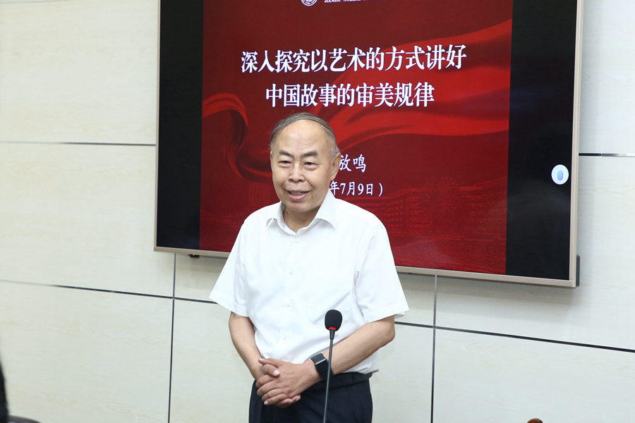 校人文社會科學學院負責同志圍繞學習習近平總書記在文化傳承發展座談會上重要講話精神作了解讀報告。國家社科基金重點項目負責人、江蘇師范大學文學院徐放鳴教授作了《深入探究以藝術的方式講好中國故事的審美規律》學術報告,簡要概述了《中國形象:審美規律與藝術構建》一書的出版背景、研究論域、主要內容和現實意義。高等教育出版社編輯張巖介紹了專著從選題到出版的相關情況。
