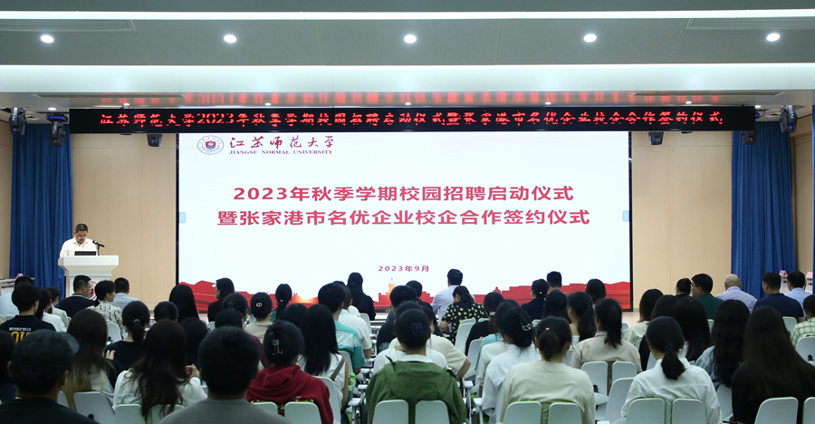 9月5日下午,我校2023年秋季學(xué)期校園招聘啟動(dòng)儀式暨張家港市名優(yōu)企業(yè)校企合作簽約儀式在泉山校區(qū)路演大廳舉行。校黨委常委、副校長張玉勤,張家港市人力資源和社會(huì)保障局黨委委員、人力資源管理服務(wù)中心主任盛宇紅及其相關(guān)部門負(fù)責(zé)人,張家港市24家知名企業(yè)人力資源主管,校研究生院、學(xué)生工作處相關(guān)領(lǐng)導(dǎo),各學(xué)院黨委副書記、就業(yè)輔導(dǎo)員,2024屆畢業(yè)生代表參加了活動(dòng)。