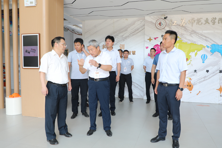 在江蘇師范大學(xué)附屬學(xué)校,周汝光一行實(shí)地走訪了教師辦公室、教室、文化長(zhǎng)廊等,與教職工進(jìn)行親切交談,進(jìn)一步了解附屬學(xué)校辦學(xué)理念、辦學(xué)規(guī)模、師資力量及軟硬件設(shè)施等情況。交流會(huì)上,與會(huì)人員觀看了附屬學(xué)校的宣傳片,聽(tīng)取了近年來(lái)該校關(guān)于發(fā)展歷程和取得的成績(jī)匯報(bào)。周汝光對(duì)附屬學(xué)校的辦學(xué)成效給予充分肯定,希望學(xué)校依托師大教育資源優(yōu)勢(shì),不斷創(chuàng)新、砥礪前行,為教育事業(yè)的發(fā)展作出新的更大貢獻(xiàn)。