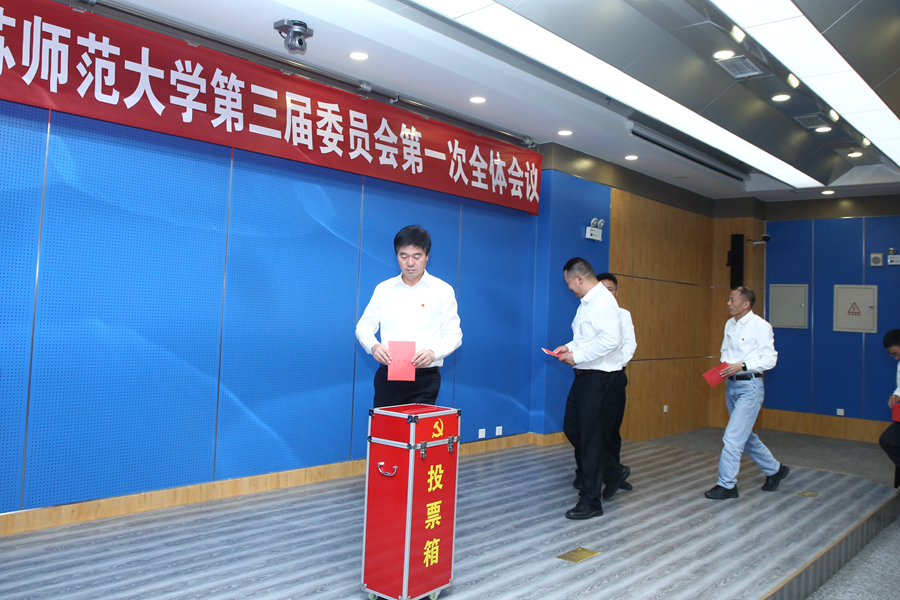 9月21日下午,中國共產黨江蘇師范大學第三屆委員會舉行第一次全體會議,選舉產生中國共產黨江蘇師范大學第三屆委員會常務委員會委員、書記和副書記。方忠同志當選中國共產黨江蘇師范大學第三屆委員會書記,周汝光、蔡國春兩位同志當選副書記。會議通過了中國共產黨江蘇師范大學第三屆紀律檢查委員會第一次會議選舉結果,閭浩同志當選中國共產黨江蘇師范大學第三屆紀律檢查委員會書記,沈道海同志當選副書記。受中國共產黨江蘇師范大學第三次黨員代表大會主席團的委托,方忠同志主持會議并講話。省委督導組到會指導。