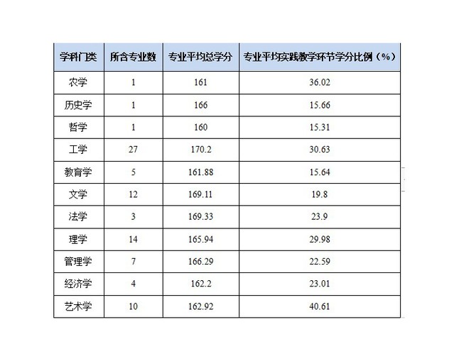 全校開設(shè)課程總門數(shù) 學(xué)校開設(shè)本科專業(yè)課2854門、5261門次;開設(shè)本科公共必修課116門、2317門次;開設(shè)本科公共選修課59門、82門次。 實(shí)踐教學(xué)學(xué)分占總學(xué)分比例 各學(xué)科實(shí)踐教學(xué)課程學(xué)分占總學(xué)分平均比例見表1。 表1 2022-2023學(xué)年實(shí)踐類課程學(xué)分比例一覽表