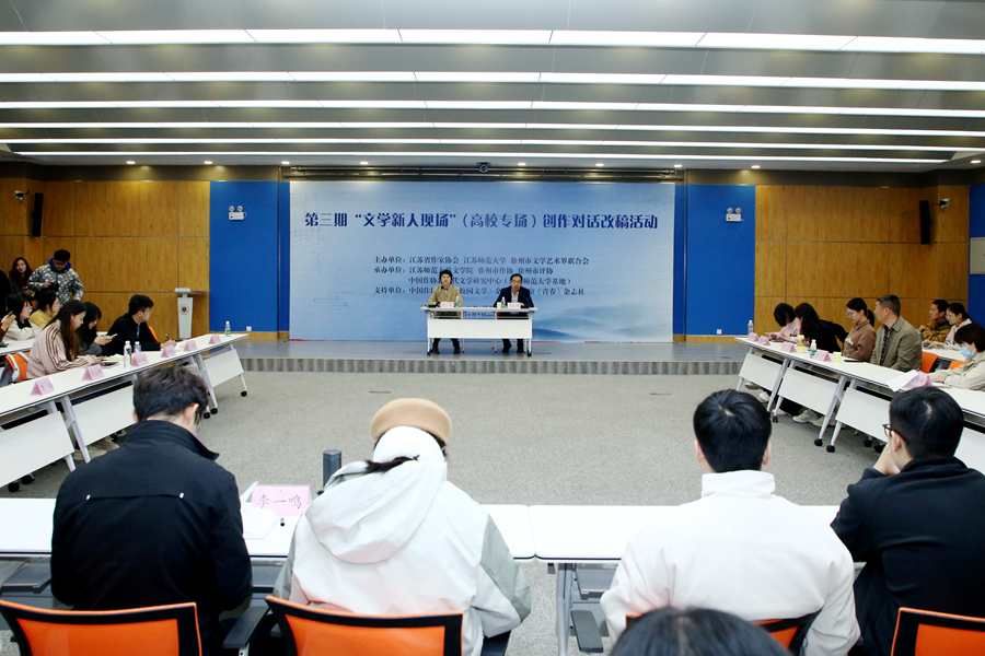 近日,江蘇省作家協(xié)會第三期“文學(xué)新人現(xiàn)場”高校專場創(chuàng)作對話改稿會在我校分析測試中心300召開。江蘇省作協(xié)黨組成員、書記處書記、副主席魯敏,江蘇省作協(xié)副主席、《揚(yáng)子江詩刊》主編胡弦,校黨委常委、副校長張玉勤,黨委常委、組織部部長、統(tǒng)戰(zhàn)部部長黃德志,徐州市文聯(lián)主席郭開芬出席活動。來自全國各地的20余位專家、學(xué)者、主編和入選作者參加了會議。