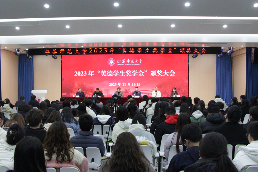 11月16日下午,我校2023年“美德學生獎學金”頒獎大會在泉山校區舉行。江蘇省教育基金會秘書長魏巨龍,校黨委常委、副校長張玉勤,以及相關職能部門負責人出席會議,全體獲獎同學及各學院輔導員、學生代表參加了會議。