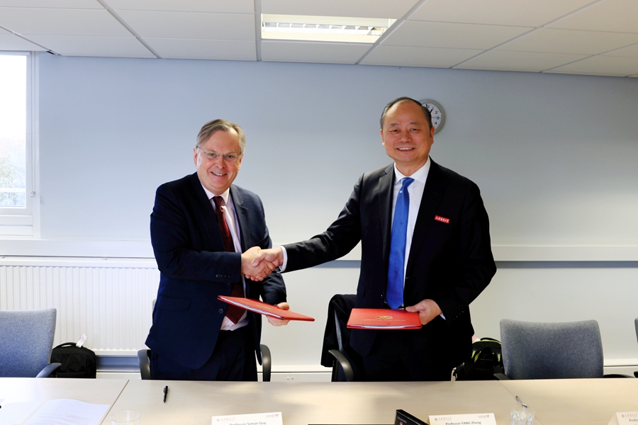 本次會談結束后,方忠和西蒙?蓋共同簽署了2+1聯合培養翻譯碩士合作項目協議。隨后,代表團與斯科菲爾德校長,以及工程學院、管理學院和藝術和社會科學學部的部分學科負責人、教師代表進行進了會談,雙方互相介紹了各自學科發展情況及優勢研究領域,共同探討在科研合作、人才聯合培養、物理學、計算機科學與技術、材料科學等潛在合作領域,并就兩校于明年聯合舉辦“一帶一路國際會議”進行了初步探討。
