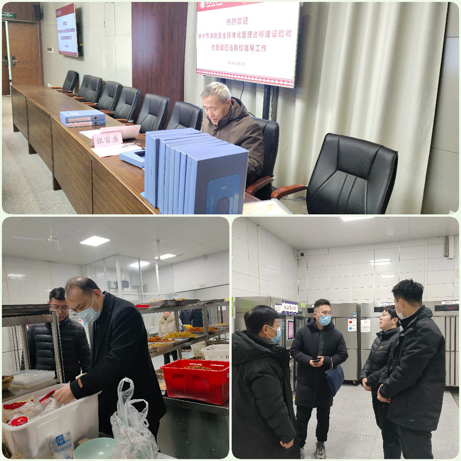 張其飛代表學校對檢查組的到來表示熱烈歡迎,對市教育、公安、消防等單位對我校安全工作給予的關心、支持和幫助表示衷心的感謝,希望檢查組多提寶貴意見和建議,助力我校高質量平安校園建設。張其飛重點從學校四級安全生產責任體系、常態化安全檢查工作機制、消防管理技防能力建設、師生安全教育演練情況等四個方面介紹了學校消防安全管理及標準化建設情況。隨后,檢查組查閱了工作臺賬,現場檢查了消控指揮中心、校園監控110指揮中心、危化品庫、理工科實驗室、高壓配電室、學生食堂、敬文圖書館、學生宿舍等消防安全重點部位和場所。