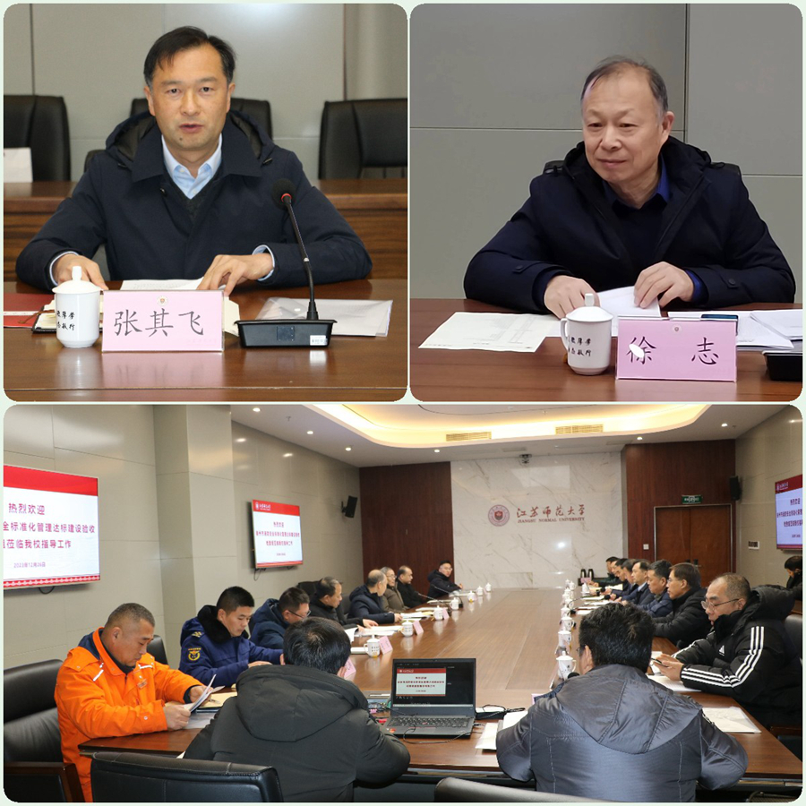 按照省、市統一部署,12月26日上午,以徐州市教育局副局長徐志為組長的市消防安全標準化管理達標建設驗收檢查組一行8人蒞臨我校檢查指導消防安全工作。校黨委常委、副校長張其飛出席匯報會,校長辦公室、研究生院、學生工作處、實驗室與設備管理處、后勤管理處、基建處、后勤集團、保衛處等單位負責同志陪同檢查。