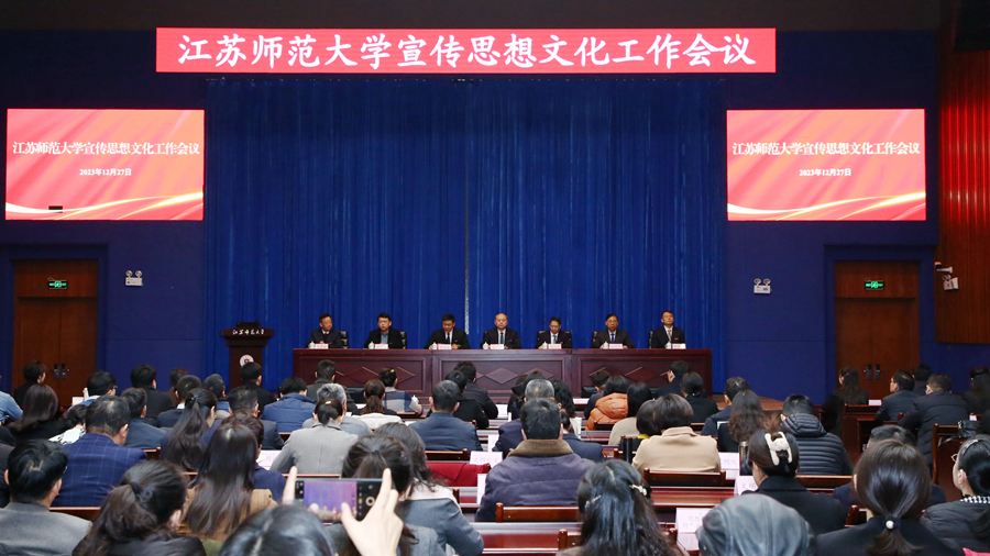 方忠強調,新時代新征程,宣傳思想文化工作面臨新形勢新任務,必須要有新氣象新作為。全校上下要深入貫徹習近平文化思想,牢牢把握“七個著力”重大要求。一是要著力加強黨對宣傳思想文化工作的領導,在踐行新的文化使命中展現新作為;二是要著力建設具有強大凝聚力和引領力的社會主義意識形態,在筑牢意識形態安全防線上彰顯新擔當;三是要著力培育和踐行社會主義核心價值觀,在學校精神文明高地建設中譜寫新篇章;四是要著力提升新聞輿論傳播力引導力影響力公信力,在壯大主流輿論上實現新提升;五是要著力賡續中華文脈、推動中華優秀傳統文化創造性轉化和創新性發展,在打造“文化蘇師”品牌上邁上新臺階;六是要著力推動文化事業和文化產業繁榮發展,在創建“書香校園”上探索新范式;七是要著力加強國際傳播能力建設、促進文明交流互鑒,在講好新時代中國故事上樹立新形象。