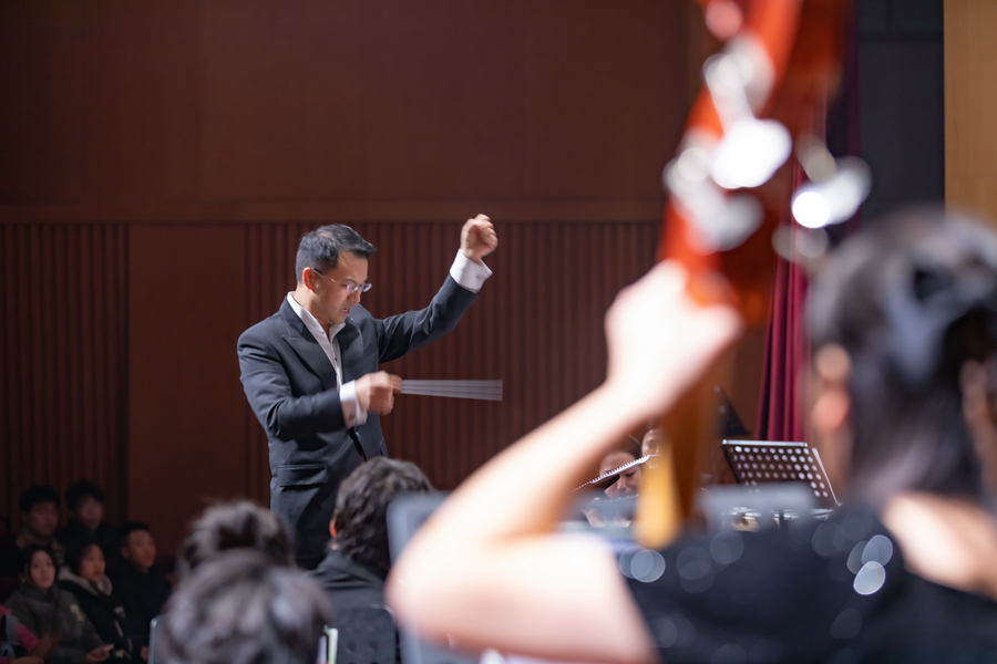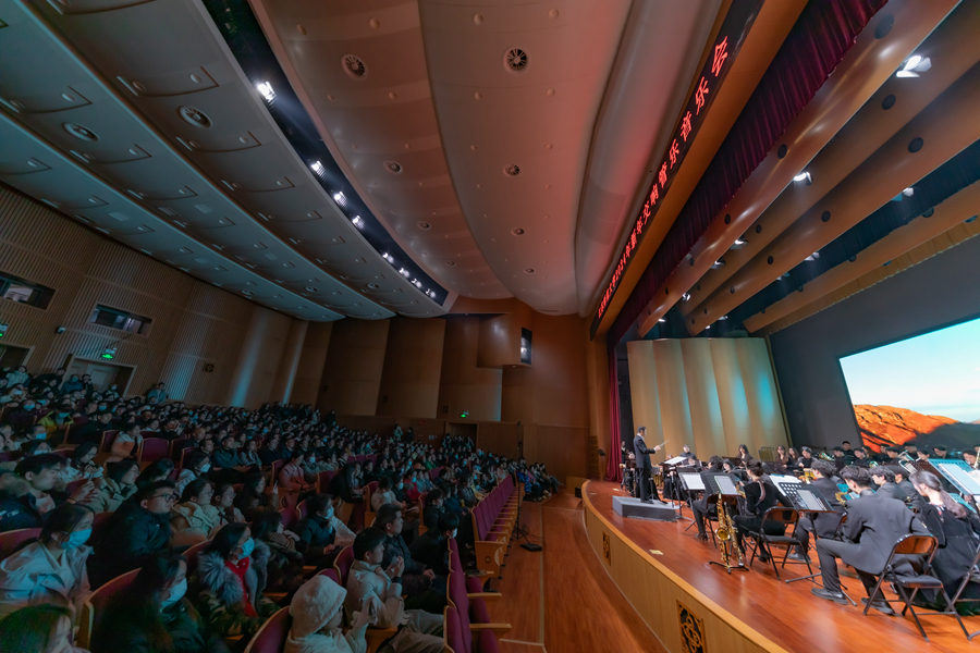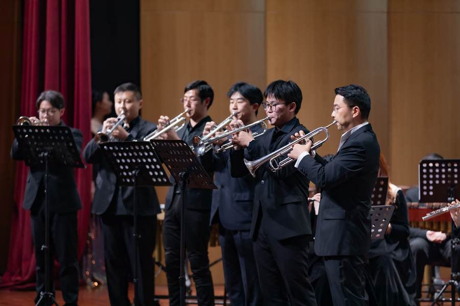 校交響管樂團在指揮崔飛老師的帶領下,為大家帶來了一場視聽盛宴。新年音樂會以《歷史的巡禮-永恒的絲路》開場,整首曲子帶領聽眾們經歷了一次跨越歐亞大陸的絲路旅程。從西班牙作曲家華金·羅德里戈創作的催人淚下、撼人心弦的《阿蘭胡埃斯協奏曲》,到約翰?施特勞斯節奏明快、充滿活力的《雷鳴電閃波爾卡》《狩獵波爾卡》,從雷哈爾創作的表現民間傳說中獵人和森林女神維利亞的愛情故事的《維利亞之歌》到管樂爵士改編版本的《人生的旋轉木馬》,以及我國著名作曲家王和聲創作的極具藏族特色和畫面感的《扎西與卓瑪》、喬治·比才極富有戲劇性和激情的《卡門狂想曲》,還有被稱為“管弦樂曲目中最詼諧、最聰明的作品之一”的安德森的代表作《打字機協奏曲》,全場十幾首曲目或莊重、或溫暖、或輕快、或明朗,一首首演奏曲,深深打動了每一位觀眾。音樂會現場一陣陣經久不息的掌聲和一束束美麗綻放的鮮花傳達了現場觀眾熱愛藝術、渴望藝術的美好情懷。最后,音樂會在《號手的假日》中圓滿落幕。