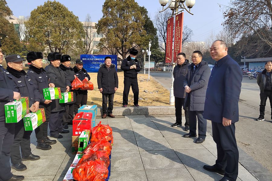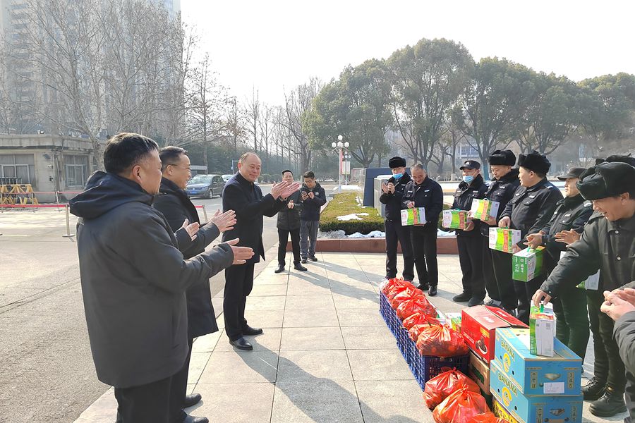方忠與校衛隊員親切交談,仔細了解假期校園安保工作情況,并代表學校向春節期間堅守安保一線的教職員工致以節日問候和美好祝愿,感謝大家為學校事業發展提供堅強安全保障。方忠為值班人員發放了慰問品,希望保衛處全體干部職工再接再厲,共同維護好校園的安全穩定。