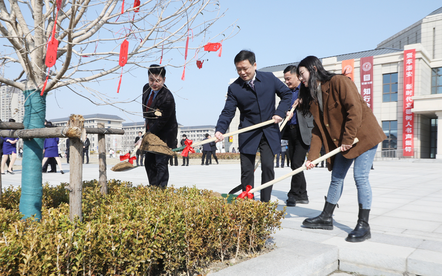 書院揭牌后,師生代表為慶祝書院成立所栽植的四株金桂樹培土。桂樹是崇高、榮譽、友好和吉祥的象征,祝福科文學子人生“折桂”。選擇植樹節當天成立書院,取十年樹木百年樹人之意。四個書院以“崇德、求真、至善、尚美”命名,寓意以德為先,培養求真、向善、尚美科文人,旨在引領全體師生走進書院、禮贊文化、賡續文脈,在習近平總書記視察過的潘安湖畔,始終高揚理想之帆,堅定奮斗目標,涵養精神品格,汲取蝶變力量,培育時代新人。
