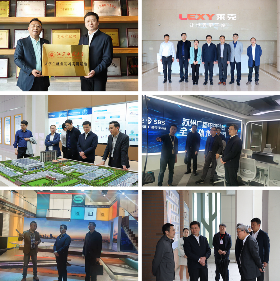 商亮一行先后走訪了興才永聯控股有限公司、萊克電氣股份有限公司、蘇州廣播電視總臺、昆山融媒體中心、昆山市教育局、師大附屬昆山實驗中學,與相關單位負責同志開展座談交流,并進行實地考察。座談會上,商亮介紹了我校辦學歷史和特色、人才培養模式和成效、專業優勢和學科發展等,聽取企業人才招聘需求及趨勢變化,洽談校企合作領域和方式。實地考察中,參觀走訪了全媒體指揮中心、演藝中心、企業產品展廳和生產車間等,對于國家級廣播電視媒體融合發展創新中心的大數據、人工智能、區塊鏈、4K+5G等高新技術、上市企業創新發展理念等有了更加深入的了解,也為學校人才培養提供了優化思路,力爭全面實現人才培養與生產實踐的閉環銜接。商亮為興才永聯控股有限公司成為江蘇師范大學“大學生就業實習實訓基地”授牌。
