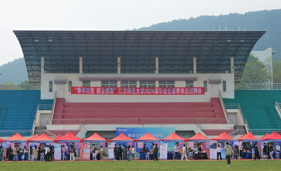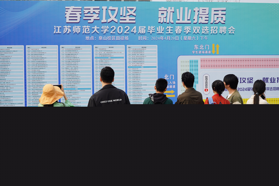 為搶抓畢業生春季校園招聘的黃金期,全力促進2024屆畢業生高質量充分就業,4月20日,“春季攻堅 就業提質”江蘇師范大學2024屆畢業生春季雙選招聘會在泉山校區舉行。在此期間,徐州市委、市政府在我校舉辦了徐州市人才政策推介會,并組團開展了專場招聘。徐州市人民政府副市長吳衛東,市人社局相關領導,我校黨委常委、副校長張玉勤,研究生工作部、學生工作處負責同志,各學院黨委副書記、就業輔導員,376家用人單位及8300余名學生參加了活動。