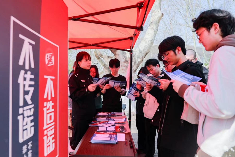 為積極營(yíng)造安全健康的校園網(wǎng)絡(luò)環(huán)境,近日,我校保衛(wèi)處聯(lián)合徐州市公安局銅山分局開(kāi)展打擊網(wǎng)絡(luò)謠言宣傳活動(dòng),向師生普及網(wǎng)絡(luò)謠言的危害和防范知識(shí),堅(jiān)決依法打擊編造、傳播網(wǎng)絡(luò)謠言的違法犯罪行為,維護(hù)網(wǎng)絡(luò)空間的清朗和穩(wěn)定。