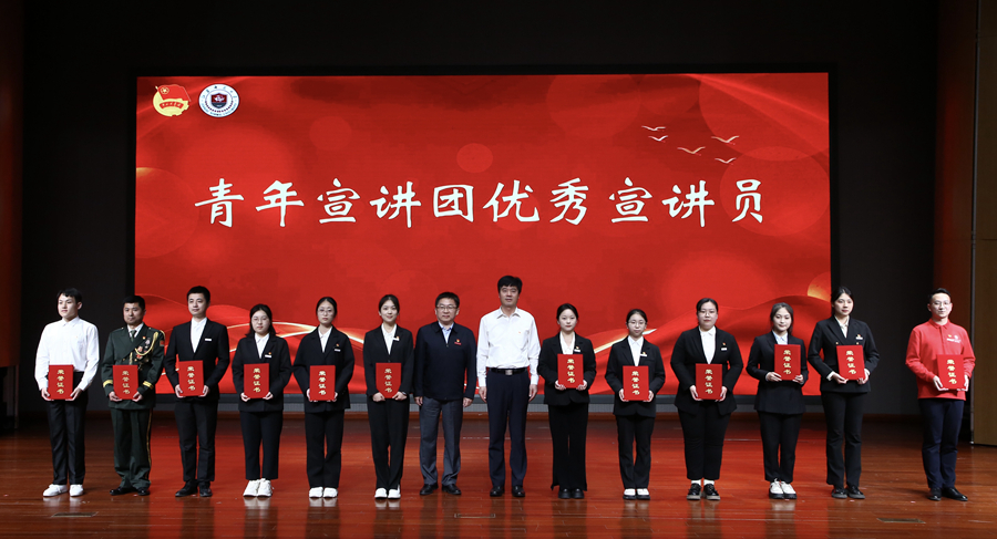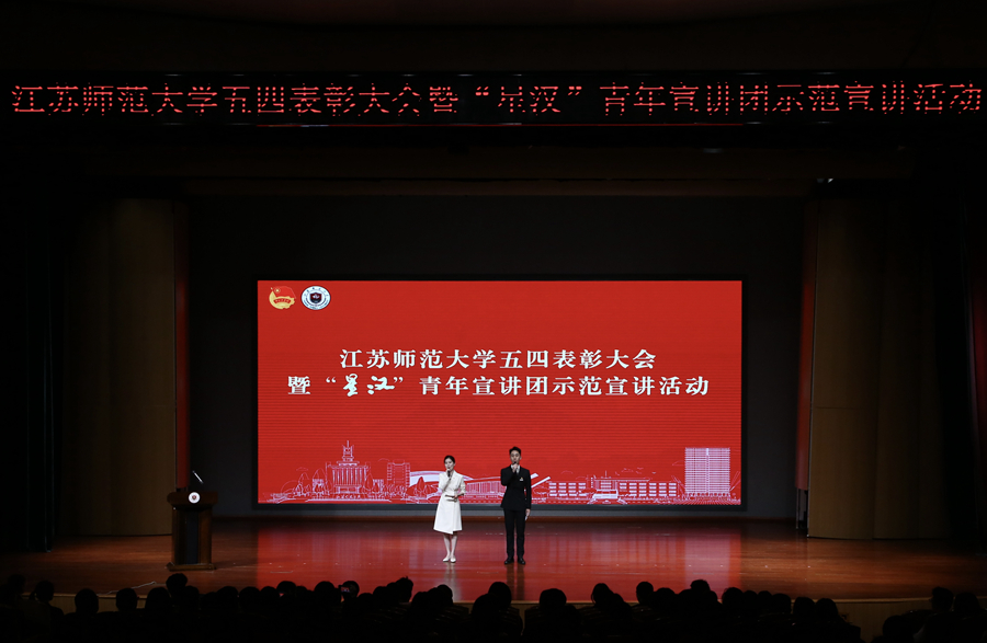 表彰大會(huì)上,我校團(tuán)委成立的“星漢”青年宣講團(tuán)通過激情昂揚(yáng)、內(nèi)涵深刻的宣講,展現(xiàn)了新時(shí)代我校青年砥礪奮進(jìn)、擔(dān)當(dāng)奉獻(xiàn)的青春風(fēng)采。生命科學(xué)學(xué)院樊昌宇同學(xué)以《我“熱辣滾燙”的大學(xué)生活》為題,分享了他從堅(jiān)持鍛煉有效減重,到投身科創(chuàng)實(shí)踐榮獲國獎(jiǎng),到專注學(xué)習(xí)科研最終保研至北京大學(xué)的追夢(mèng)故事;法學(xué)院詹其飛同學(xué)的宣講《在新戰(zhàn)場(chǎng)續(xù)寫新榮光》講述了他參軍入伍、搶險(xiǎn)救災(zāi),重返校園、奉獻(xiàn)基層的奮斗故事,展現(xiàn)了永葆軍人底色、勇?lián)鷷r(shí)代重任的優(yōu)良作風(fēng);馬克思主義學(xué)院尹子宸同學(xué)的宣講《踐行“兩山”理論,建設(shè)美麗中國》聚焦家鄉(xiāng)生態(tài)發(fā)展,闡述了我國生態(tài)文明建設(shè)從理論到實(shí)踐的一系列深刻變化;文學(xué)院余永芳老師在《從中國教育的“朋友圈”看“一帶一路”》的宣講中,從教育視角分享了中國積極推動(dòng)“一帶一路”教育合作,在人才培養(yǎng)、人文交流等方面展現(xiàn)的大國擔(dān)當(dāng);教育科學(xué)學(xué)院于戰(zhàn)宇老師以《我的成長(zhǎng)故事,它有色彩》為題,以自身求學(xué)經(jīng)歷為主線,講述了他秉持謙和、不斷嘗試、潛心鉆研,堅(jiān)持不懈、永不放棄的多彩成長(zhǎng)故事;語言科學(xué)與藝術(shù)學(xué)院胡曉波同學(xué)和他的手語翻譯同學(xué)以《無聲世界,有聲夢(mèng)想》為題,分享了他勵(lì)志求學(xué)、自立自強(qiáng),以公益之力扶聾助殘、以樂觀精神詮釋無限可能的奮斗歷程;生命科學(xué)學(xué)院劉偉杰老師的宣講《從實(shí)驗(yàn)室到空間站的逐夢(mèng)堅(jiān)守》分享了其帶領(lǐng)團(tuán)隊(duì)開展空間站生物被膜防控研究,為中國空間站的長(zhǎng)期安全穩(wěn)定運(yùn)行貢獻(xiàn)師大力量的科研報(bào)國故事。大會(huì)在小合唱江蘇師范大學(xué)青年版《上春山》中圓滿結(jié)束,積極展現(xiàn)了我校青年意氣風(fēng)發(fā)的奮進(jìn)姿態(tài)。