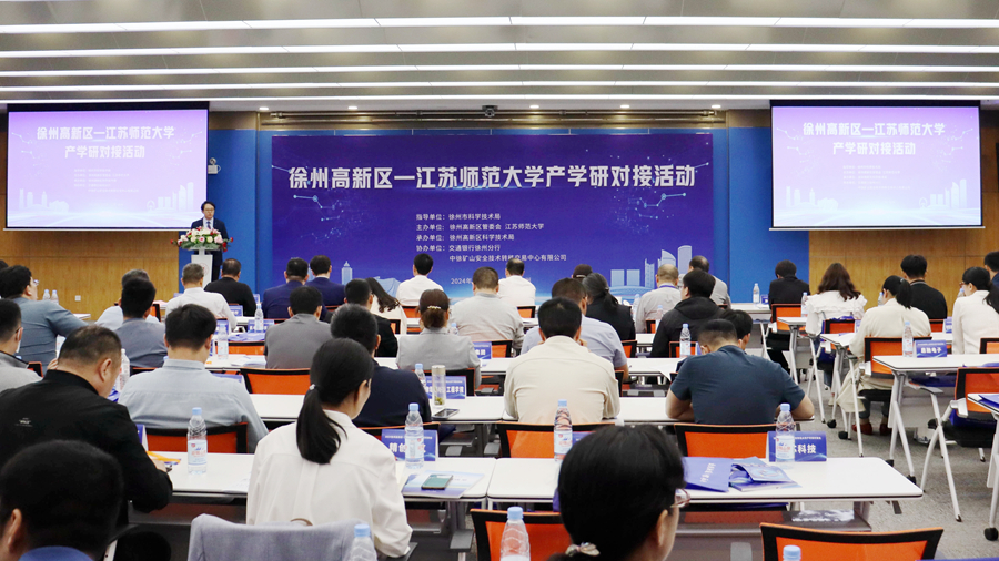 5月11日下午,江蘇師范大學(xué)-徐州高新區(qū)產(chǎn)學(xué)研對接活動在我校舉行。我校校長周汝光,徐州市科技局黨組成員、副局長滕俊磊,徐州高新區(qū)黨工委委員、管委會副主任齊兵等領(lǐng)導(dǎo)出席活動。徐州高新區(qū)相關(guān)企業(yè)家、校科學(xué)技術(shù)研究院、技術(shù)轉(zhuǎn)移中心、各理工科學(xué)院相關(guān)領(lǐng)導(dǎo)、相關(guān)科技成果完成人及學(xué)校科技管理部門相關(guān)人員共計100余人參加對接大會。