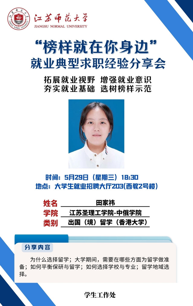 為增強(qiáng)學(xué)生就業(yè)意識,拓寬就業(yè)視野,夯實(shí)就業(yè)基礎(chǔ),學(xué)生工作處結(jié)合學(xué)生關(guān)注度高、求職意愿強(qiáng)烈的行業(yè)領(lǐng)域,開展“榜樣就在你身邊”就業(yè)典型求職經(jīng)驗(yàn)分享會,充分發(fā)揮朋輩榜樣的示范引領(lǐng)作用,幫助更多的學(xué)生提升就業(yè)競爭力。經(jīng)學(xué)院推薦、學(xué)校遴選,現(xiàn)將第十一期活動開展相關(guān)情況通知如下: