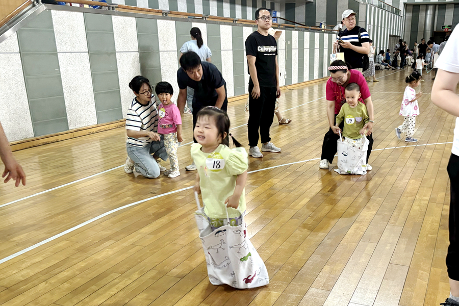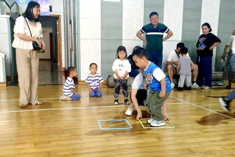 本屆親子運(yùn)動(dòng)會(huì)主題是“運(yùn)動(dòng)悅童心 親子伴成長(zhǎng)”,活動(dòng)預(yù)告一經(jīng)發(fā)布,就受到廣大青年教職工的熱切關(guān)注和積極響應(yīng)。運(yùn)動(dòng)會(huì)分為兒童組和成人組兩個(gè)組別,參賽選手全部由學(xué)校教職工及6歲以下的子女組成,最小的孩子只有6個(gè)多月,部分家庭攜兩位子女參賽。根據(jù)選手的年齡特點(diǎn),兩個(gè)組別分設(shè)了袋鼠跳、吉祥娃娃、推鐵環(huán)、拔河等10多個(gè)妙趣橫生的項(xiàng)目。家長(zhǎng)和孩子們并肩面對(duì)每個(gè)游戲的挑戰(zhàn),小運(yùn)動(dòng)員們天真精彩的表現(xiàn)和家長(zhǎng)重溫童樂的喜悅相映成趣,展現(xiàn)了親情互動(dòng)的歡樂瞬間。加油聲、喝彩聲此起彼伏,充滿了體育館的每個(gè)角落。